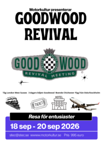 Finns det då något som kan mäta sig emot Elmia i Europa? Svaret är Goodwood. Jag som varit på de flesta stora motorträffarna kan med verkligen från hjärtat säga att Goodwood Revival är något du inte ska missa. Senast åkte jag med min mentor Ingvar Lindgren som en hyllning till hans insats när jag var grabb och han tog med mig på racingbanorna för att börja köra Endurance racing. STEC har styrt upp en resa helgen innan finalen på Kinnekulle till England och https://www.goodwood.com/motorsport/goodwood-revival/ så häng med till Goodwood för detta är som jag brukar säga bra på riktigt. Motorkultur Goodwood